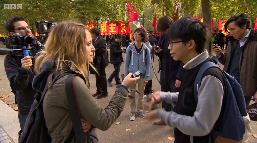Interviewing Hong Kong pro-democracy activist Joshua Wong. Screenshot via Newsnight